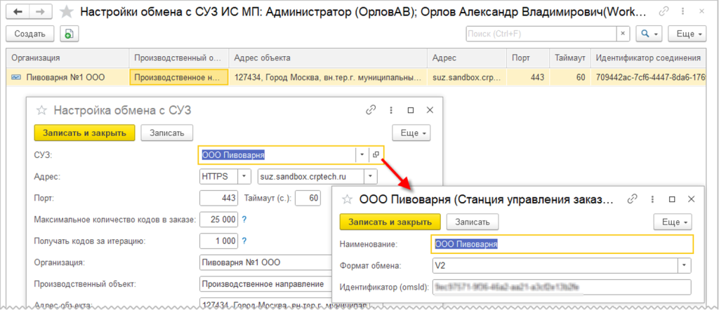 2. Настройка подключения к СУЗ (Станции управления заказами):