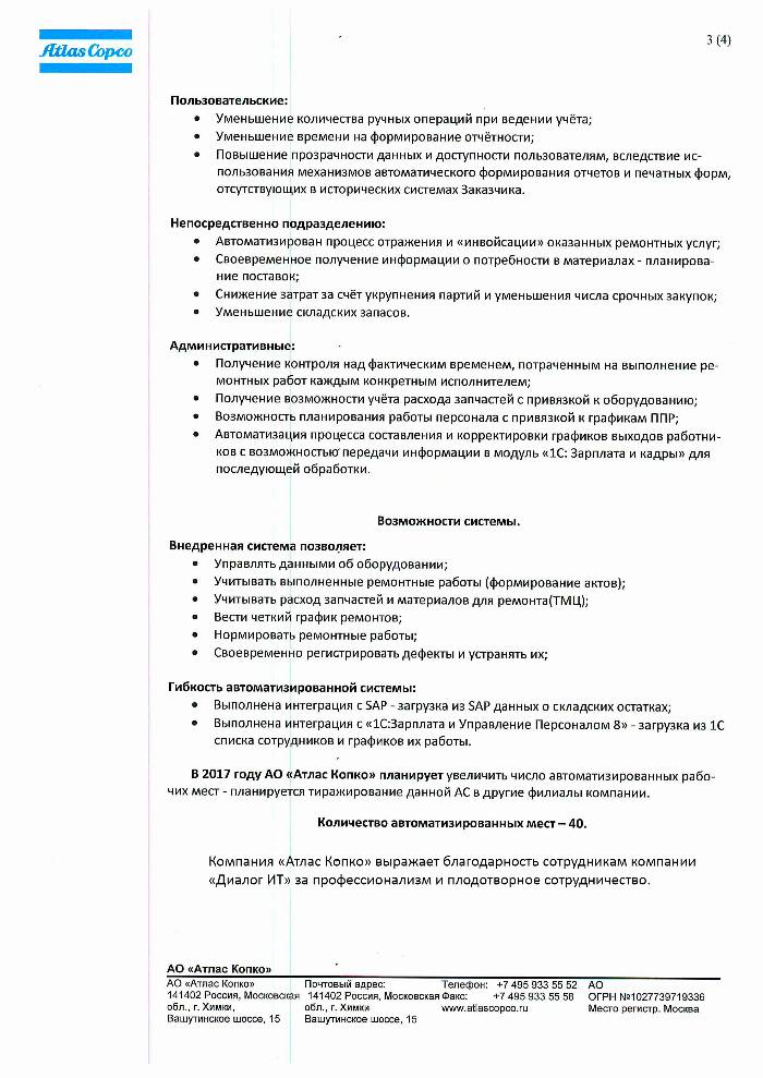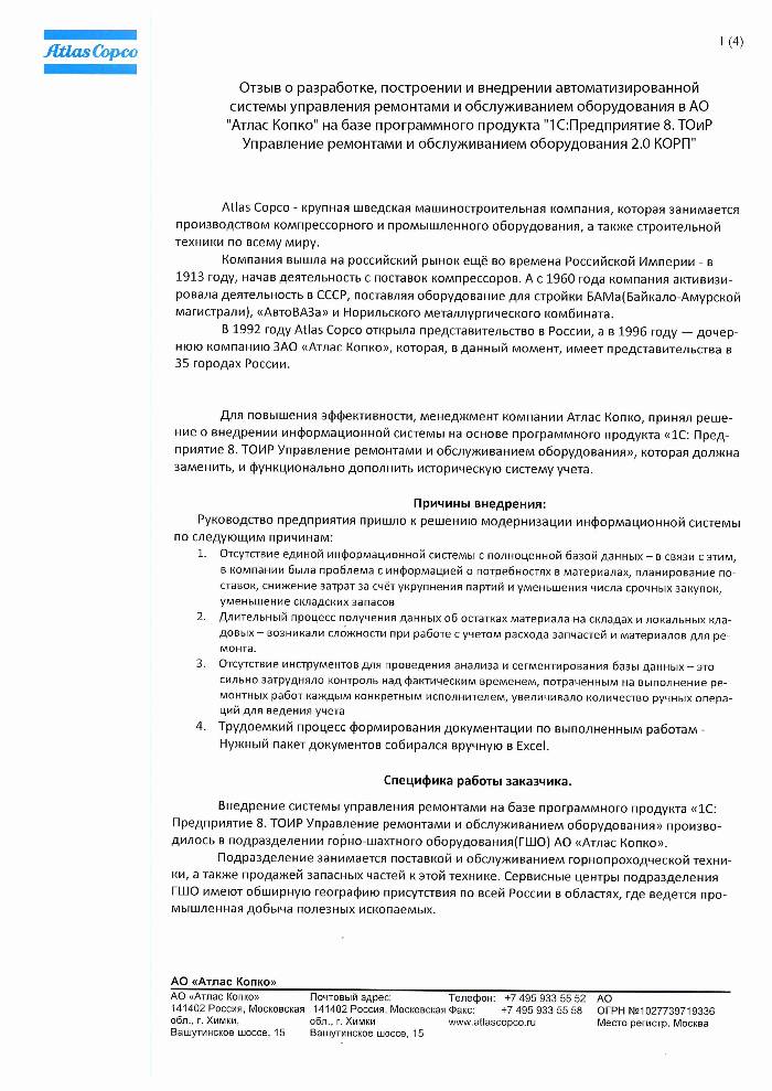 Одно из направлений деятельности «Атлас Копко» — сервисное обслуживание поставленной продукции и поставка запасных частей. Процесс формирования документации по выполненным работам был трудоёмким: нужный пакет документов собирался вручную в MS Excel.