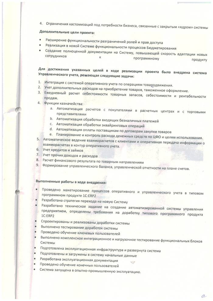 Вендор платформы прекратил развитие продукта, в связи с чем руководством компании было принято решение о переходе на другую современную и высокотехнологичную платформу, какой и является «1С:Предприятие 8», программный продукт «1С:ERP Управление предприятием 2».