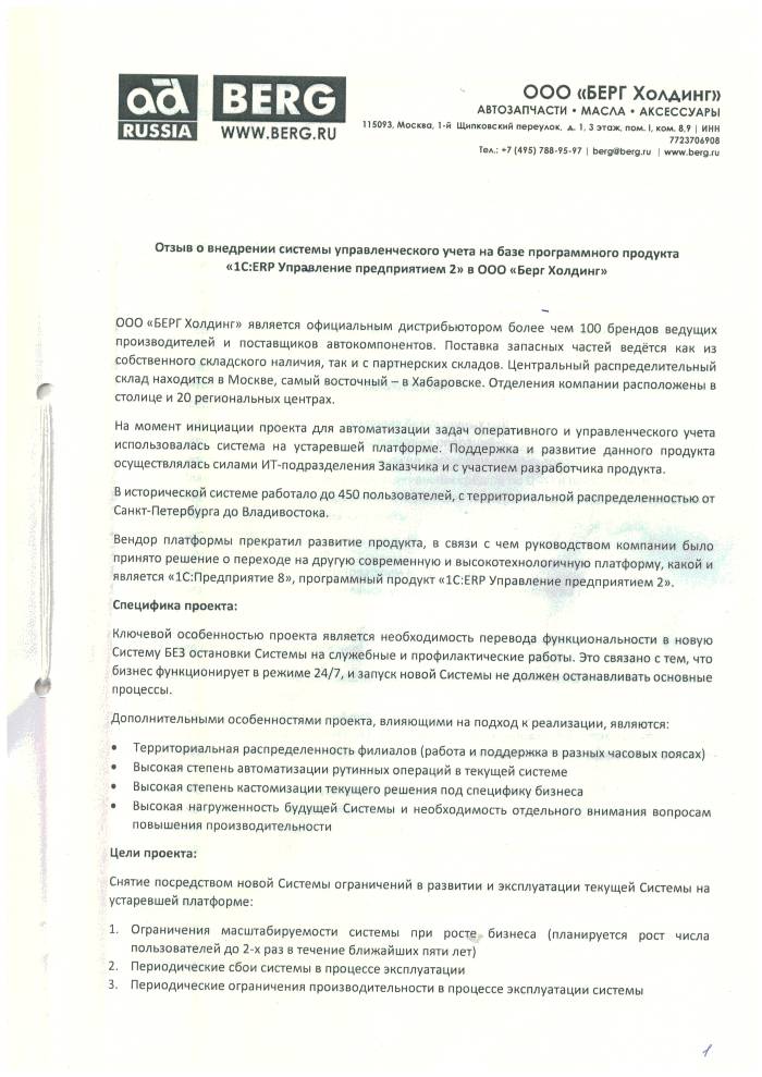 В компании «БЕРГ Холдинг» построили систему оперативного и управленческого учета