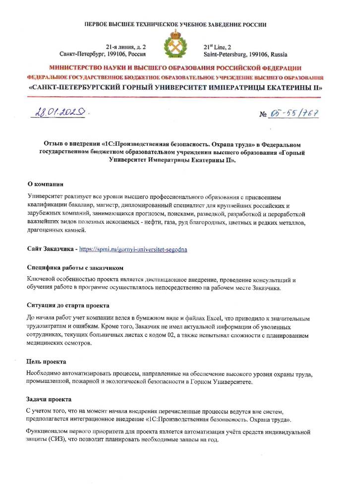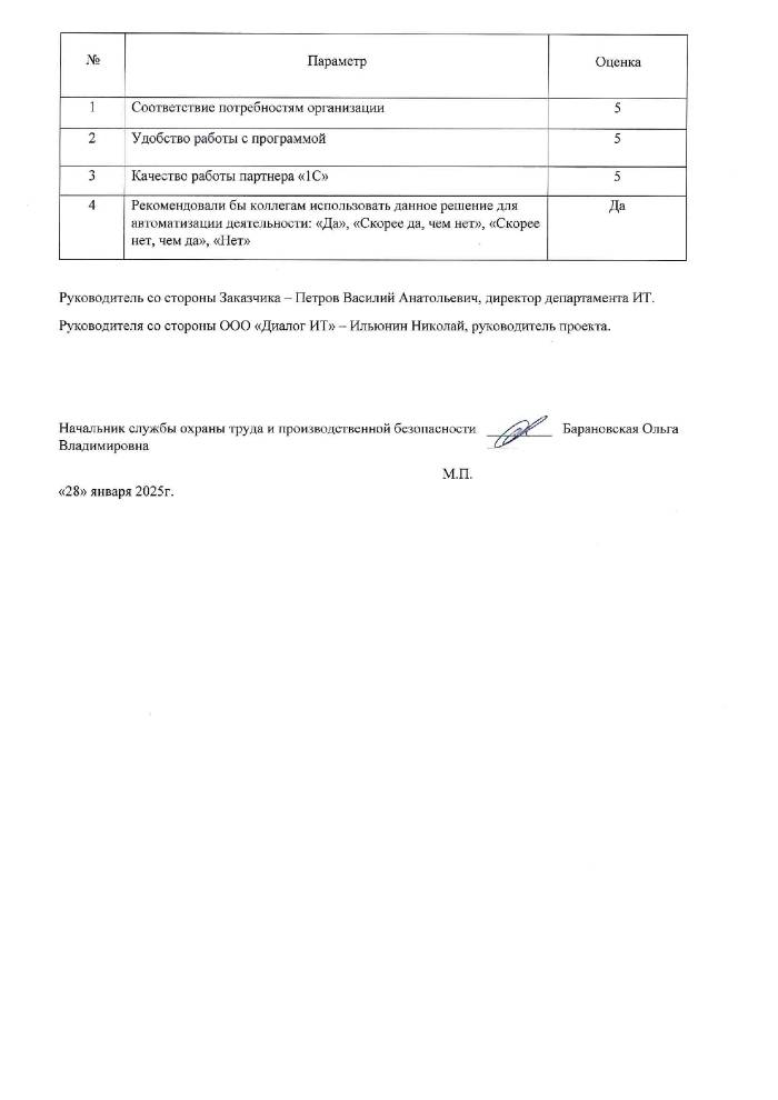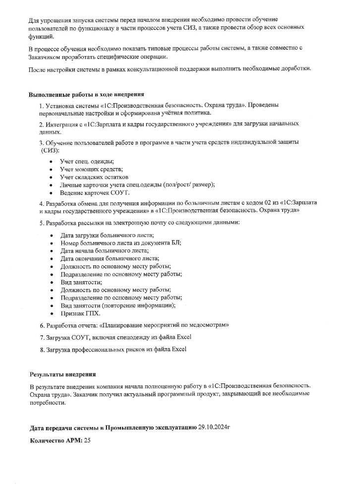 С учетом того, что на момент начала внедрения перечисленные процессы ведутся вне систем, предполагается интеграционное внедрение «1С:Производственная безопасность. Охрана труда».