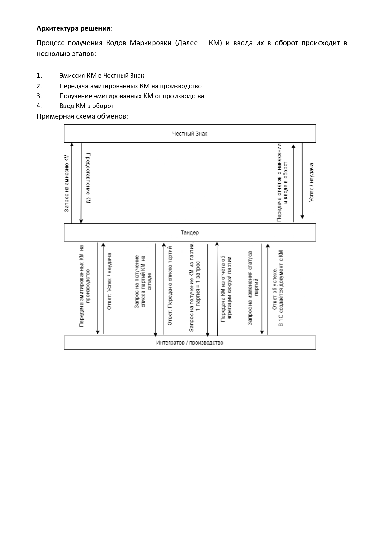 На этапе передачи КМ в ПО интегратора для последующего нанесения их на продукцию и при получении нанесенных КМ от ПО интегратора задействуются следующие изменения: