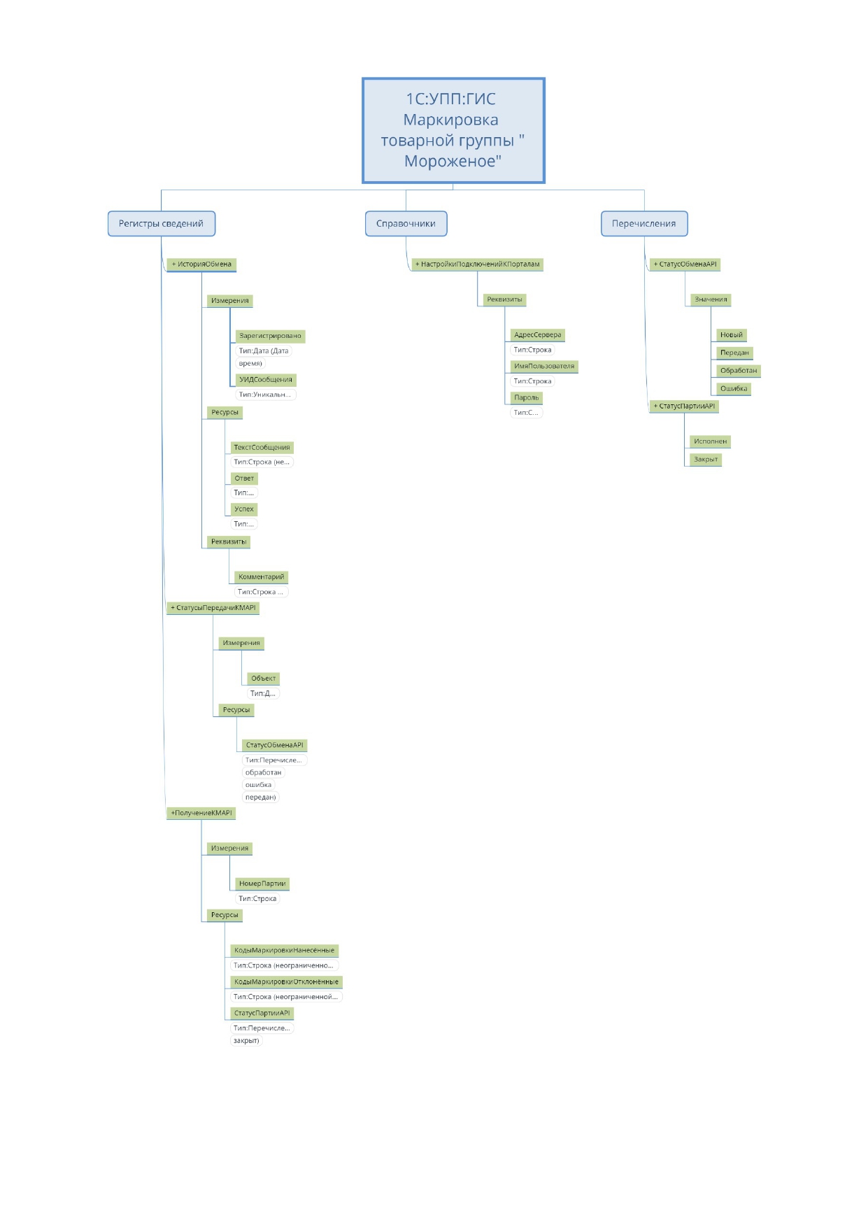 За осуществление обмена отвечают два регламентных задания и одна доп. обработка. Обработка выполняет как передачу, так и получение КМ. Предварительно на стороне ERP-системы создается справочник «НастройкиПодключенияКПорталам».