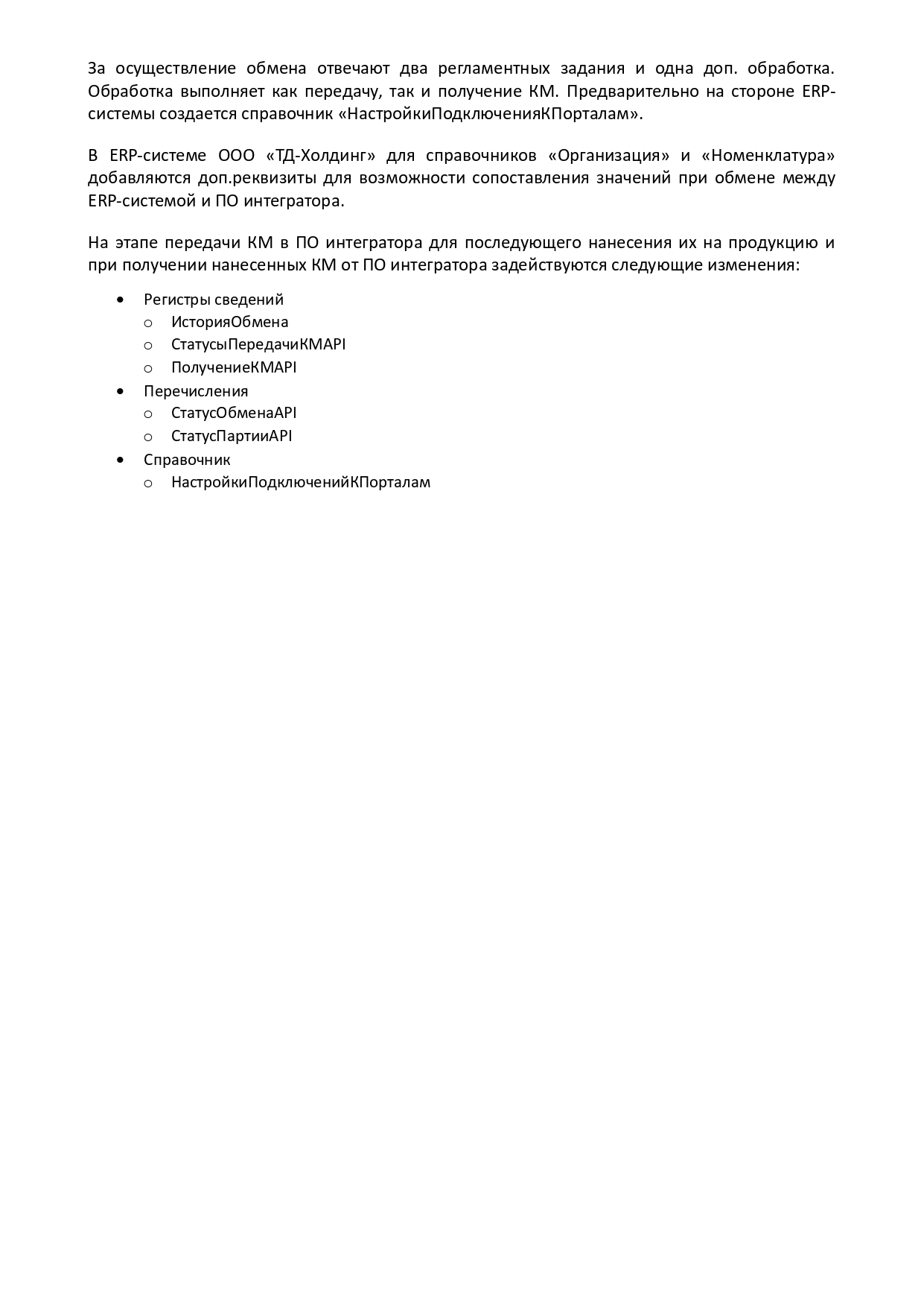 В ERP-системе ООО «ТД-Холдинг» для справочников «Организация» и «Номенклатура» добавляются доп.реквизиты для возможности сопоставления значений при обмене между ERP-системой и ПО интегратора.