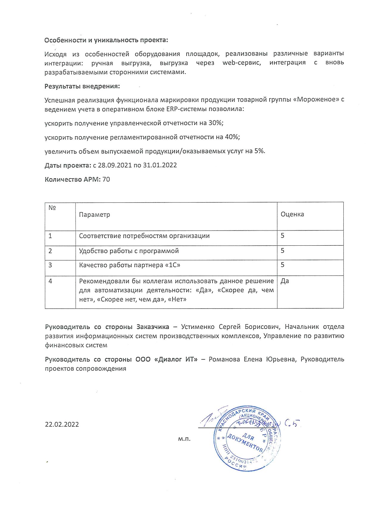 Отзыв по автоматизации бизнес-процесса для работы 70 пользователей по организации оборота маркируемой продукции.