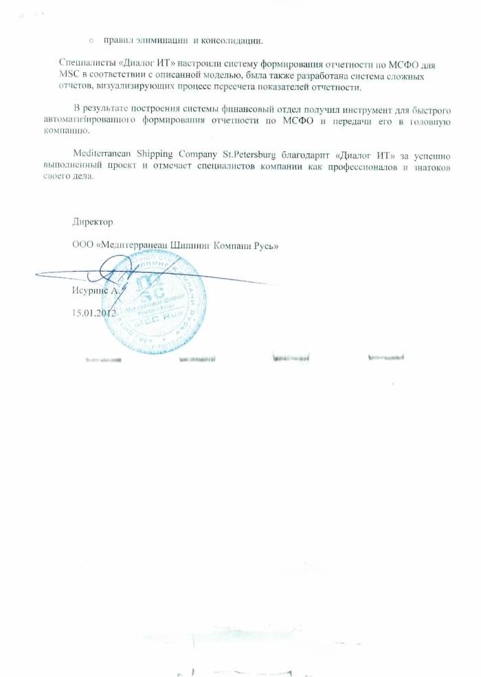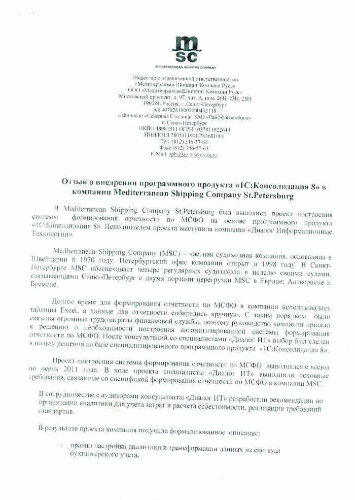 Автоматизация формирования отчетности по МСФО в петербургском офисе компании Mediterranean Shipping Company