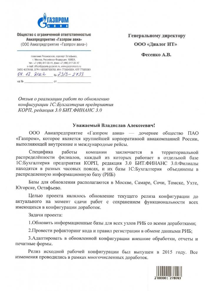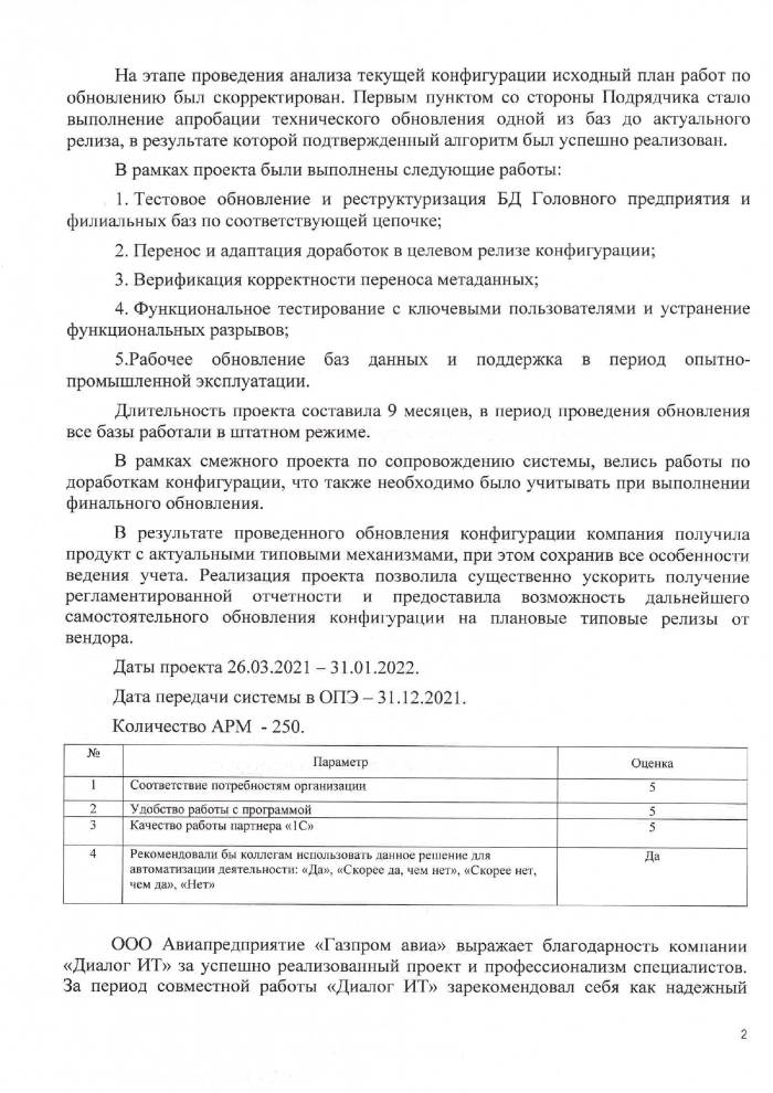 Обновление продукта "1С:Бухгалтерия 8 КОРП", редакция 3.0 и "БИТ.ФИНАНС 3.0" в ООО Авиапредприятие "Газпром авиа"