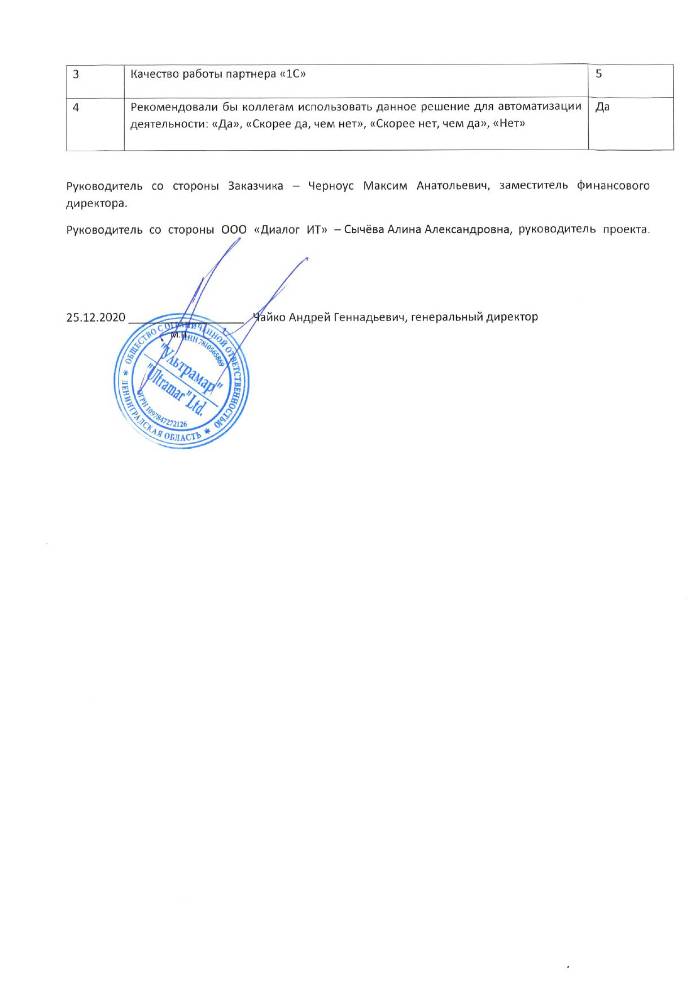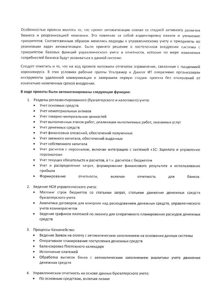 Следует отметить и то, что на ход проекта наложили отпечаток ограничения, связанные с пандемией коронавируса. В этих условиях рабочие группы «Ультрамар» и «Диалог ИТ» оперативно организовали инструменты удаленной коммуникации и завершили проект без отклонений от изначально намеченных сроков внедрения.