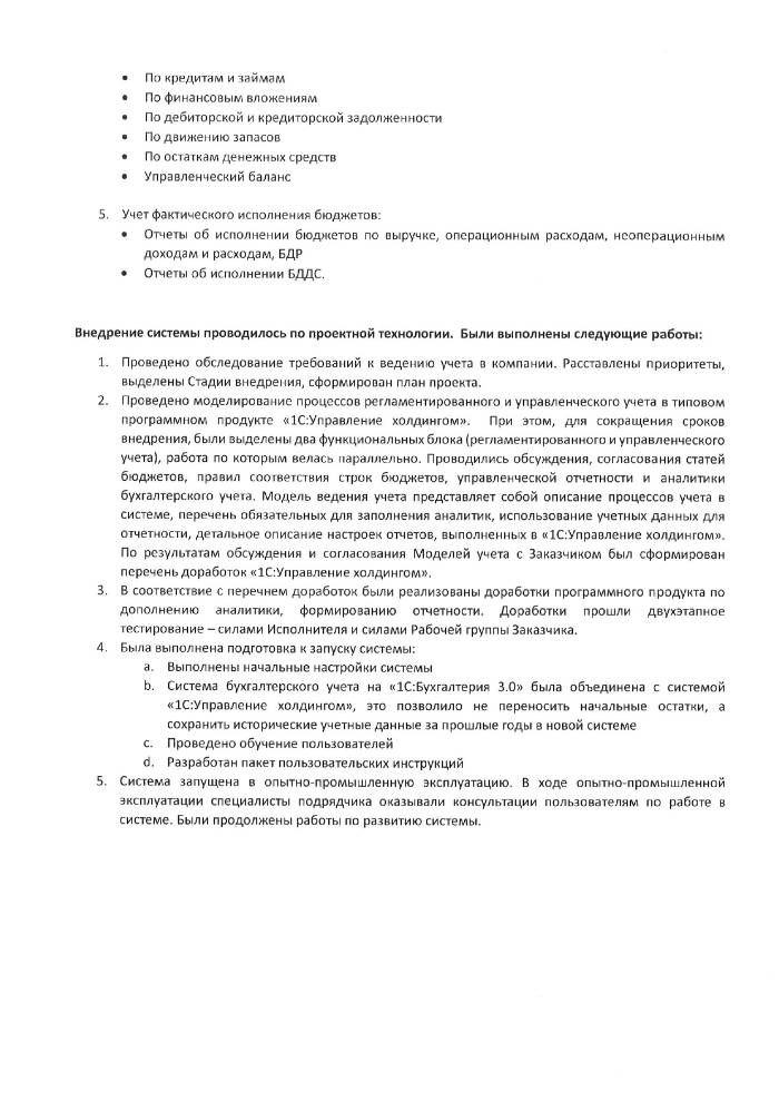 Система финансового управления построена на базе решения «1С:Управление холдингом». Автоматизированы следующие функции: