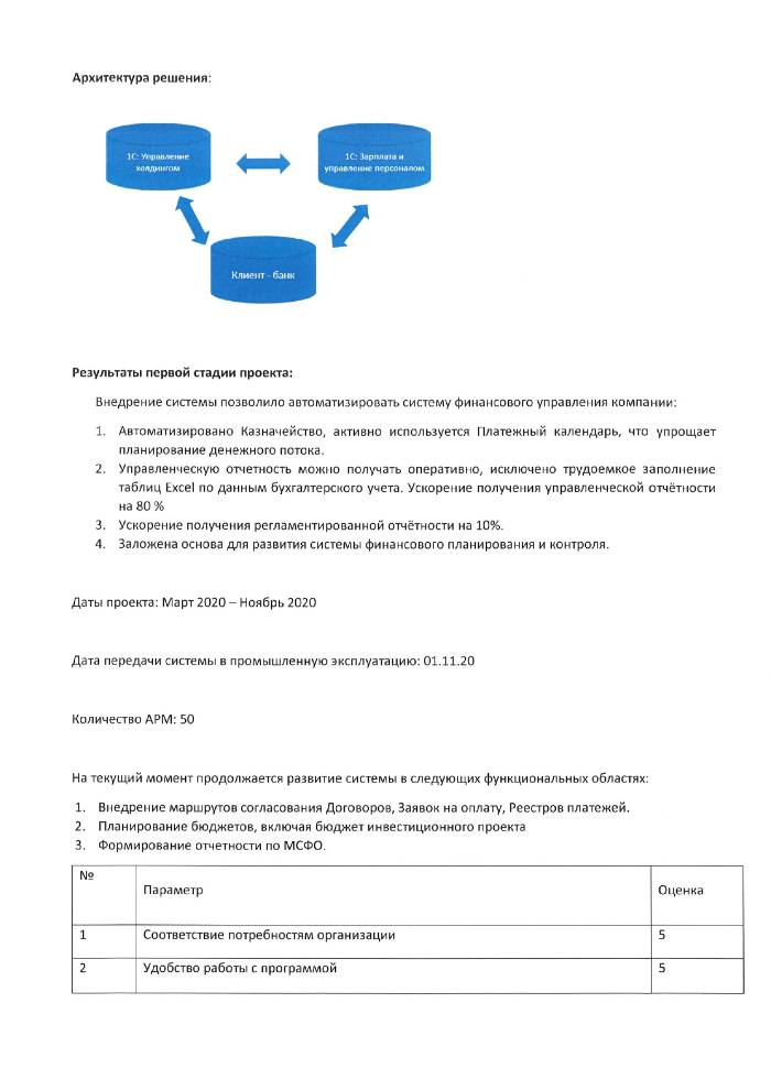 Цель проекта — создать систему оперативного управления деятельностью компании на базе данных финансового учета с применением технологической платформы «1С», для сокращения трудозатрат, а также ускорения в получении отчетности.