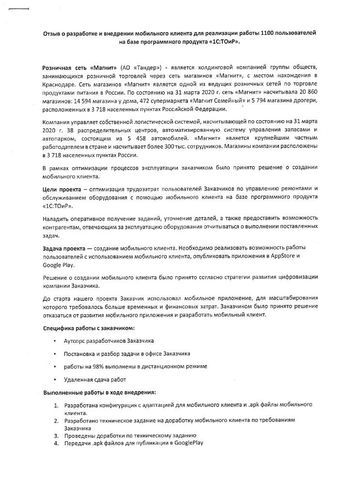 Розничная сеть «Магнит» внедрила мобильный клиент для управления ремонтами на базе «1С:ТОиР Управление ремонтами и обслуживанием оборудования».