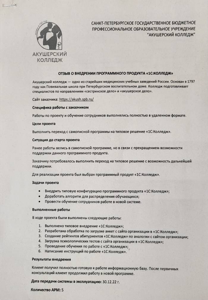 Автоматизация учебных процессов в СПБ ГБПОУ "Акушерский колледж"